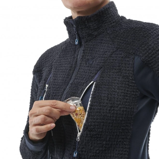 Ultra douce au toucher, la fourrure polaire qualité X-LOFT®, très aérienne, est capable d’emmagasiner énormément d’air grâce à ses poils longs. Or, plus il y a d’air, plus la chaleur intérieure est importante. Pour évacuer le surplus, la structure quadrillée crée un réseau particulièrement actif dans la gestion de l’humidité. Sur les flancs, des panneaux POWERWOOL®en laine/polyamide stretch optimisent la résistance aux frottements tout en procurant chaleur et aisance.