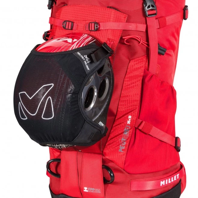 Porte casque amovible et compactable. Sadapte sur tous les volumes de sacs dos ayant des sangles de compressions latérales. Nouvelle solution technique MILLET, ce porte-casque souple, minimaliste et amovible, permet un arrimage parfait du casque sur le sac. Avec 4 points de fixation et une construction stretch, il assure un volume compact qui reste toujours plaqué dans l’action pour éviter les déséquilibres et favoriser la précision en montagne. Il s’adapte intelligemment à tous les volumes de sacs dos ayant des sangles de compressions latérales. Compactable et escamotable, il est livré dans sa poche de rangement.