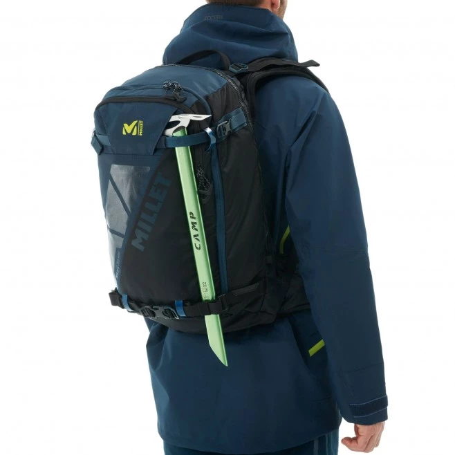 Seulement 2,44 kg tout équipé (2,0 kg sans les cartouches) pour ce litrage pensé pour les sorties à la journée. Le look montagne assumé du Neo affiche clairement la couleur : il sera porté lors des ascensions, il faudra donc qu’il se montre à la hauteur. Le matériau sélectionné pour l’arrière provient des sacs de fast hiking. La respiration du dos s’accompagne d’une circulation d’air globale qui provient du mesh employé et du travail sur les bretelles et ceinture. Pour le système d’airbag avalanche, le mot d’ordre pourrait être « Less is more ». La sobriété est souvent une marque d’efficacité. Le système Alpride est 100 % mécanique. C’est un ressort qui est mis sous tension, donc la poignée déclenche forcément. Votre sauveteur s’appelle Neo !