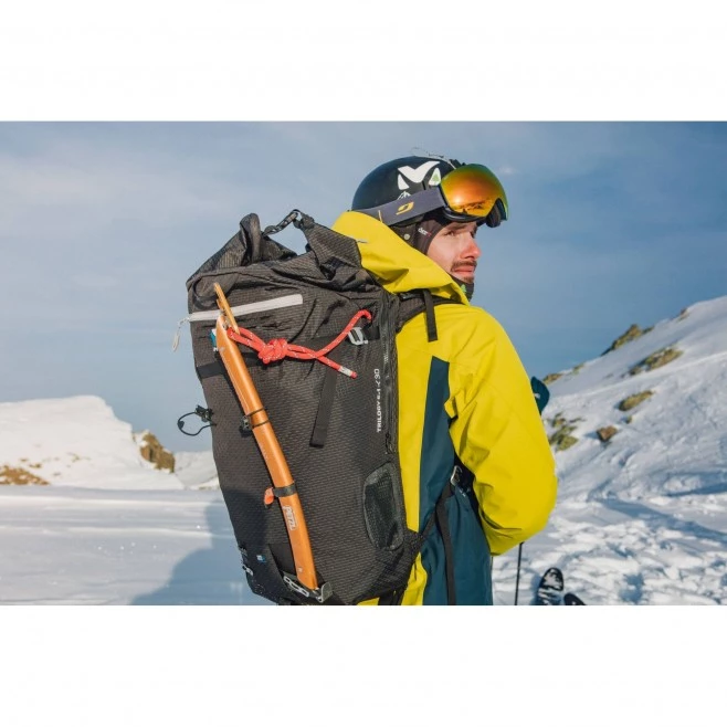 Équipez-vous léger et optimisez votre sécurité en montagne avec le sac airbag avalanche TRILOGY 30 E-1. C’est le sac dédié à la pratique de l’alpinisme et du ski de randonnée doté d’un système d’airbag avalanche le plus léger du marché. Il intègre toute l’expérience Millet en matière de fonctionnalité pour la haute montagne dans une conception minimaliste, avec des porte-piolets, porte-skis et un accès zippé rapide au compartiment principal, combiné au système de sécurité avalanche électrique Alpride E-1. Amovible pour permettre d’utiliser le sac toute l’année, ce système sûr déclenchable à volonté ne présente aucune contrainte lors des voyages en avion. Son volume extensible permet d’utiliser ce sac ultra léger pour les raids de plusieurs jours également.