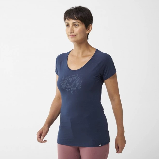 Tee-Shirt bleu pour femme IMJA WOOL PRINT TS SS W