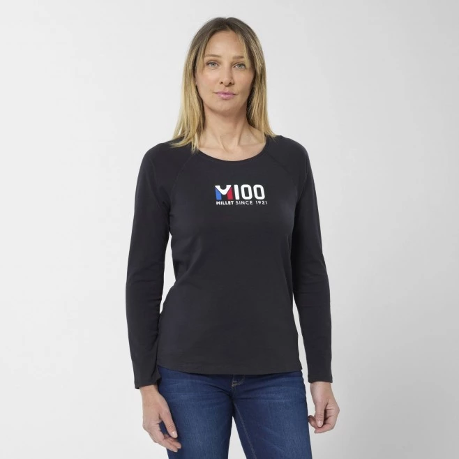 Ultra confortable grâce à sa matière en coton biologique douce, élastique et respirante, ce tee-shirt à manches longues et col rond pour femme célèbre le centenaire de MILLET. Ce modèle exclusif est décoré d’un motif M100 tricolore sur la poitrine et sera idéal pour communiquer votre passion pour la montagne durant vos moments décontractés.
