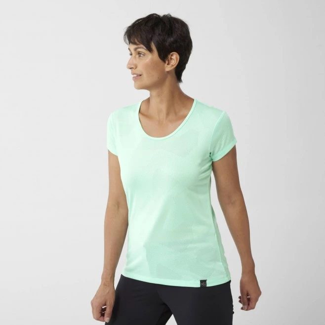 Tee-Shirt turquoise pour femme HIKING JACQUARD TS SS W