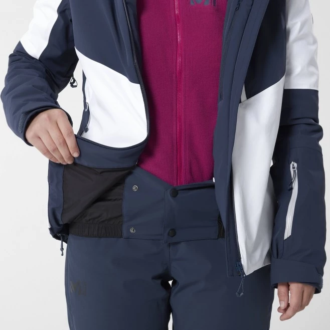 La SNOWBASIN représente le haut de la gamme de vestes de ski MILLET pour femme, avec une matière à l’élasticité quadridirectionnelle favorisant une excellente liberté de mouvement, ainsi que des propriétés imperméables et respirantes 20K/20K. La coupe féminine est plus longue dans le dos pour une meilleure protection, les coutures sont thermosoudées et cette veste de ski pour femme est totalement ajustable. Équipée d’une jupe-pare-neige stretch et de manchons stretch souples et doux pour éviter l’introduction de neige dans votre tenue, cette veste imperméable est garnie d’isolation synthétique recyclée PRIMALOFT® SILVER, très légère, chaude et compressible. Les nombreuses poches et les zips YKK complètent ce modèle destiné aux passionnées de ski qui veulent s’équiper du meilleur.