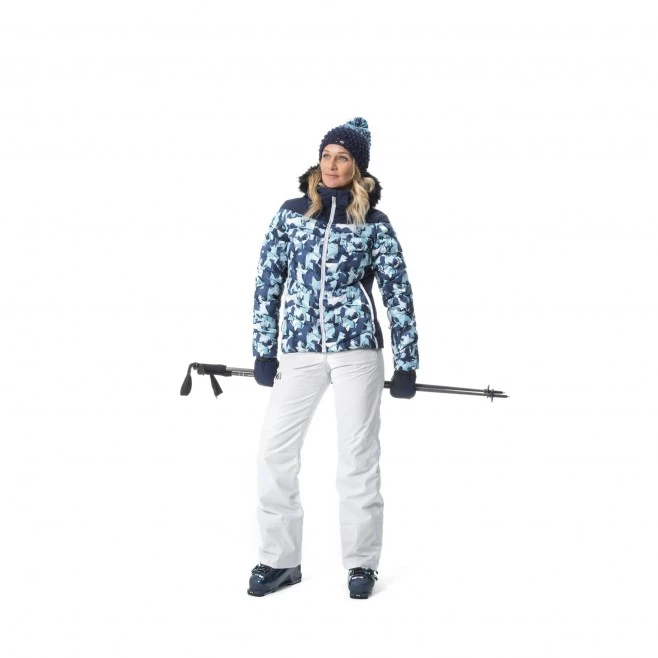 Passez sans transition des pistes à l’après-ski et sentez-vous à l’aise à tout instant, dans la veste de ski pour femme RUBY MOUNTAIN. Composée d’une matière DRYEDGE® étirable, majoritairement à base de fibres recyclées, elle affiche des performances imperméables 10K pour une protection efficace face à la neige et la pluie. Sa capuche ajustable en 3D est garnie de fourrure amovible pour un style féminin, cette veste se règle par ailleurs à la taille et bénéficie de bas de manches élastiqués, afin de bloquer efficacement le froid. Des détails soignés comme une jupe pare-neige, des manchons stretch et doux aux poignets et de multiples poches complètent cette veste MILLET polyvalente.
