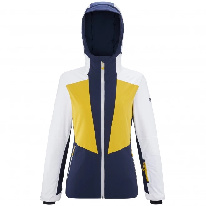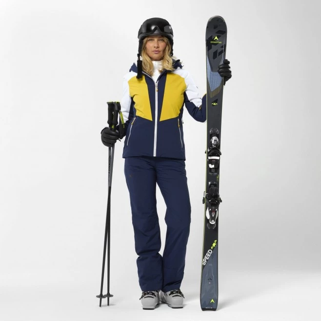 Avec son style tricolore original et sa composition à base de fibres recyclées, la MEADOWS est la veste de ski de celles qui veulent allier performance, plaisir et respect des ressources naturelles. Dotée d’une coupe dynamique et féminine, elle préserve votre liberté de mouvement grâce à sa matière DRYEDGE® étirable, complétée d’une doublure stretch. Imperméable et respirante, cette veste de ski pour femme bénéficie de coutures thermosoudées étanches. La capuche est ajustable en 3D et la taille et les poignets sont également reglables pour une protection parfaite. Ventilations zippées, jupe pare-neige, manchons stretch et multiples poches, rien n’a été omis pour un confort incomparable sur les pistes.